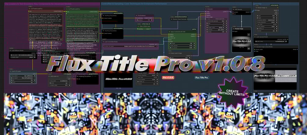 A complete, plug-and-play ComfyUI workflow that harnesses the power of Flux AI to create eye-catching title designs with unlimited creative possibilities. No complex setup required—just load and create.
